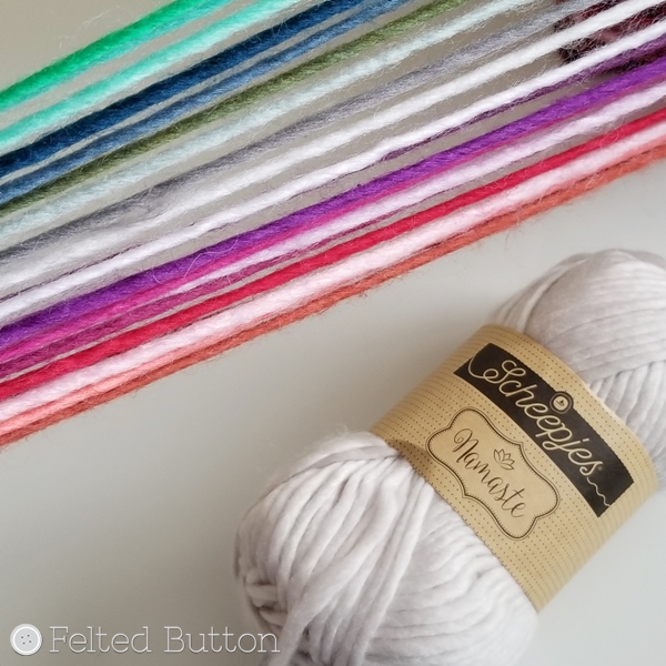 Since returning from Yarndale earlier this month, I've been busy with a fabulous new yarn that I squished in my suitcase. I intentionally took a really large bag knowing that I would come home with loads of yarn, so stuffing 24 balls of the 34 colors of Scheepjes Namaste in my bag was easy--well, almost easy. Thankfully this yarn is squishy!