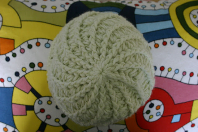 A sweet little newborn hat with cherries on top! I don't know where I found the pattern.